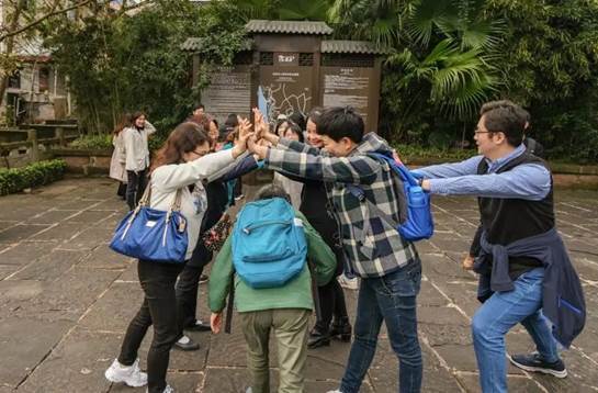 参观完杨尚昆故居,日语系全体成员在双江古镇开展了一系列有趣的工会活动。活动内容包括古镇寻宝、翻译纠错、登山、小火车接龙等项目。活动现场充满了欢声笑语,气氛热烈,成员之间积极配合、合作完成趣味比赛,展现了日语系团结友爱的集体精神。