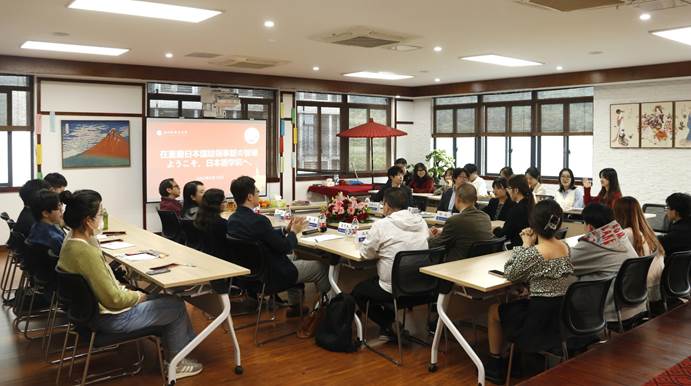 下午4点半,与日语学院师生的交流座谈在日本文化体验室拉开帷幕。日语学院院长黄芳、党总支书记曾珍、副院长陈可冉、日本研究所所长杨伟、日语学院外教村濑隆之、二又淳,以及近20名在校本科、研究生出席了此次活动。