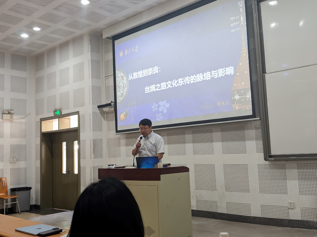 刘东波老师的讲座基于跨文化交流与传播的问题意识,以丝绸之路文化的东传为线索,介绍了日本近代学术界对敦煌文化的研究及其文学中的敦煌书写。刘老师指出,作为日本皇室宝库的正仓院珍藏有大量被誉为“大唐珍宝”的敦煌文物,是为中日古代文化交流的生动象征。不仅如此,日本自近代以来还曾掀起过三次敦煌热潮,为延续中日间自古以来的文化交流起到了不可磨灭的推动作用。