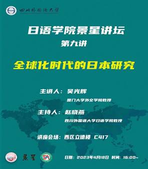 2023年4月18日16点“景星讲坛”第九讲在西区立德楼C417准时开场。本次讲坛的讲师是厦门大学外文学院教授、博士生导师吴光辉教授,我院赵晓燕教授担任讲座主持人。日语学院院长黄芳教授,副院长陈可冉教授,日语学院师生参加了此次讲坛。