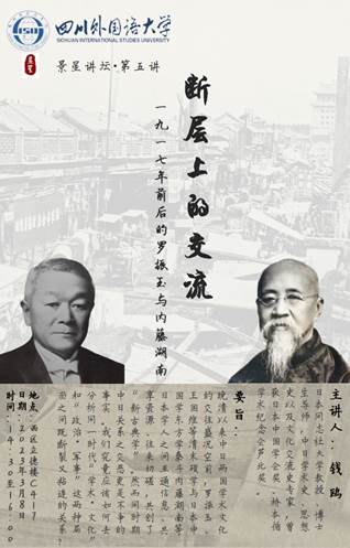 本次讲座的题目为“断层上的交流——1917年前后的罗振玉与内藤湖南”。钱鸥教授首先介绍了关于罗振玉、王国维研究的发展历程,指出目前有关罗、王二人的研究在取向上的失衡造成了对人物认识的割裂。钱鸥教授认为,关于两人生涯后期——特别是关于二人的政治参与和社会交往等方面——的研究存在不足,且在研究二人与同时代日本学人关系方面,只聚焦“古”,只讨论“学”,而对两人与同时代日本学人“论今”的情况重视不够。钱鸥教授通过详细的史料,主要阐述了罗、王二人东渡日本的始末,并论及了罗振玉与内藤湖南之间在政治理念上的殊异,认为在这些殊异构成的断层上,仍就绽放出了基于彼此的文人素质与情怀所诞生出的“学术·文化”之花。