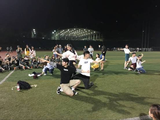 一开始,由陈柏屹学长带来的一首林俊杰的《修炼爱情》拉开了慰问演出的序幕。在学长的歌声下,新生们都放松了训练时紧张的心情,沉浸在温柔的歌声里。一曲毕,学生会的学长学姐们走出,给新生发放了月饼和饮料。然后学长学姐们带来了精彩的舞蹈《极乐净土》,为了给新生们呈现最棒的演出,表演的同学们一星期前就抽出课余时间来排练。为了活跃气氛,使新同学之间更加熟络,学生会还组织了击鼓传花的游戏。最后拿到花的新同学需要站在中间进行自我介绍和表演,一下子就炒热了现场的气氛,大家在欢笑声中度过。最后,由罗心言学姐为大家带来了一支帅气的舞蹈,为温暖的慰问演出画上了圆满的句号。