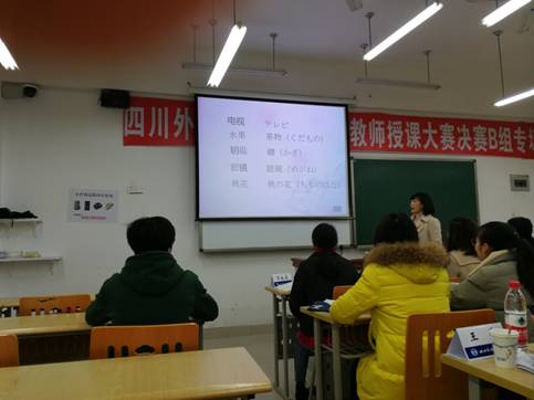 此次比赛B组专场是极富川外特色的小语种专业比赛,共有日、俄、法、德、西、葡、意等11个语种的老师参加。比赛分为教学设计和课堂教学两个环节。在这两个环节中,张丽霞老师均获得了评委老师的一致好评。