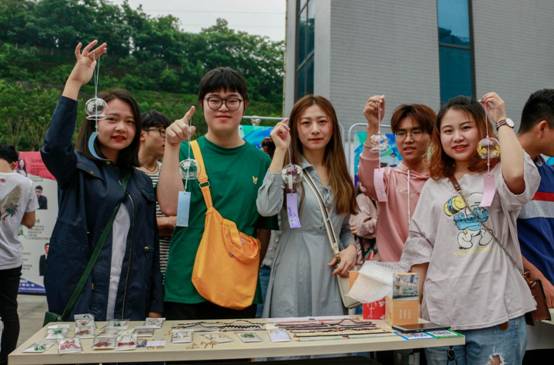 活动现场各年级办分别开设有由同学们自制的和式耳饰、荷包、手作明信片、寿司、折扇、书签等展台,商品琳琅满目;身着和服、手持蒲扇的少女更是成了校园里一道独特日本文化的风景线。