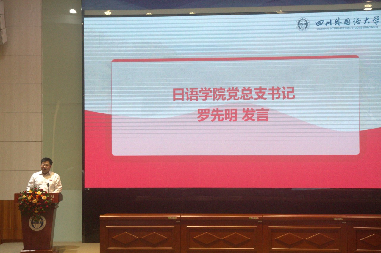 学院党总支书记罗先明在讲话中,希望同学们 “敢于有梦、勇于追梦、勤于圆梦”,通过奋斗放飞青春梦想,为以中国式现代化实现民族复兴挺膺担当。努力把自己培养成国家社会需要的高素质复合型创新型外语人才,为深化中外文明交流,构建人类命运共同体,讲好中国故事贡献力量。罗先明勉励同学们要注重德智体美劳全面发展,筑牢社会主义核心价值观,积极承担责任,自律且独立生活。做好学业、职业、人生规划,珍惜大学时光,积极参加社会实践,遵守法律法规,共同迎接优秀的自己。