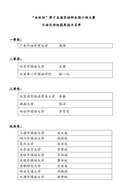 下午的决赛中,乐宇梵同学沉着冷静,思维清晰,中日语译文流畅准确,经受住了评委的严格评判,征服了所有评委及观赛人员,最终斩获日语同声传译组一等奖。这也是我院学子自参加此项全国级口译大赛以来首次夺魁。