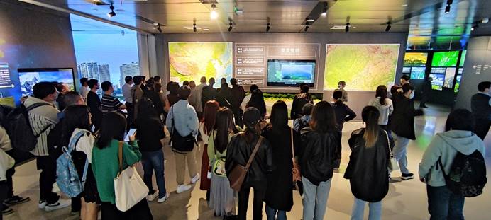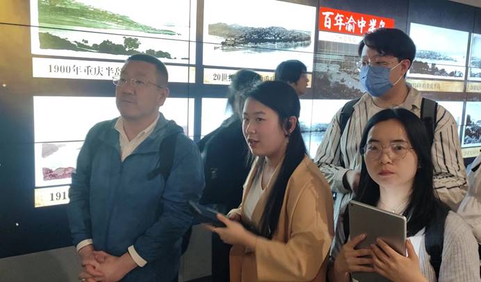 此次活动的第一站是位于南岸区南滨路的重庆市规划展览馆。该馆是了解重庆建城历史、展现重庆城市规划的一扇窗口。在专业解说员的带领下,同学们饶有兴趣地参观了重庆地貌、重庆城市发展、重庆交通、白鹤梁等各展厅的丰富馆藏,观看了模拟还原钓鱼城和重庆山水风光的全息影像。展馆中大量运用的数字化科技元素,凸显了重庆市作为我国内陆开放高地所具有的现代化城市形象和广阔的发展前景。