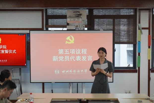 砥砺前行守初心,逐梦奋进新征程。在庆祝中国共产党成立103周年之际,为深入学习贯彻习近平新时代中国特色社会主义思想,落实新时代党的建设总要求,进一步增强新发展党员的自豪感和使命感,加强党性教育、坚定理想信念,7月3日下午,日语学院在立德楼C417会议室举行新党员入党宣誓仪式。学院党总支书记罗先明,组织员余岚,党总支委员、本科生党部书记金晶、研究生党支部书记史嘉钰及新发展的9名学生党员参加。入党宣誓仪式由余岚主持。