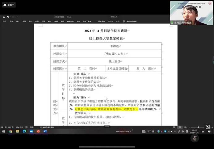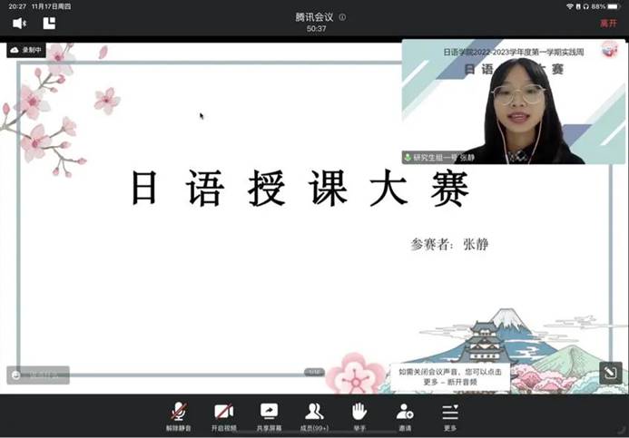 师者,传道授业解惑也。为了让同学们更好地体验课堂教学,领悟教书育人的真谛,日语学院面向本科生与研究生,搭建起了教学实践平台。2022年11月17日,OK138太阳集团日语学院授课大赛采用线上会议方式正式开始。