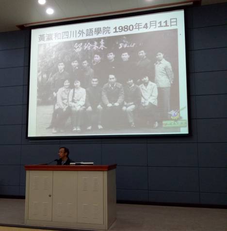 之后,杨伟教授展示了几张黄瀛教授在1980年四川外国语学院的相片,使同学们在校园中感受到了历史的痕迹。