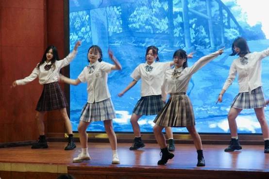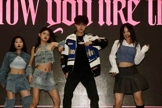 最后一个节目是当下备受欢迎的韩国女团的《how you like that》翻跳,现场也有很多同学跃跃欲试。玄若瑾、陈李来、杜蓉雨、杨诗晗四位表演者用充满活力的表演博得了观众席源源不断的欢呼与掌声。