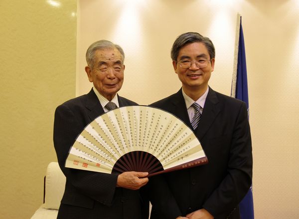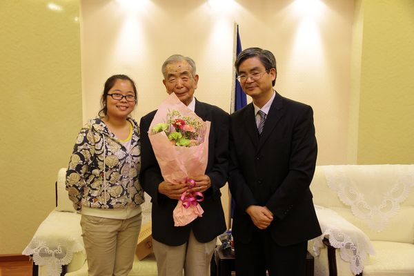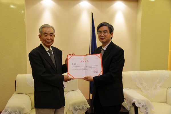 2013年5月17日星期五,下午五时许,在宏文楼2楼贵宾接待室为即将离任回国的日籍教师福田繁老先生举行了首个颁发OK138太阳集团“荣誉教师”称号仪式。