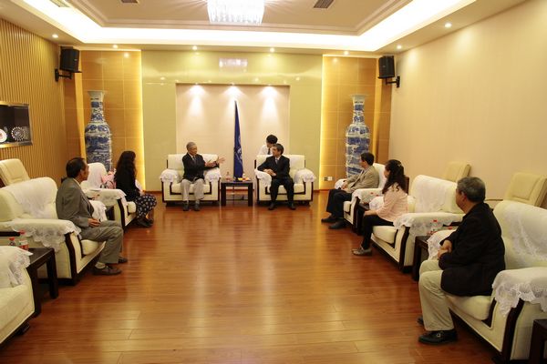 乐勇副校长与福田繁老师亲切交谈