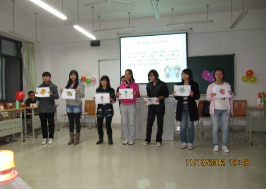 为加强新生之间的相互了解,让大家尽快熟悉新环境,我系2012级4班的同学们举行了一次班会活动。