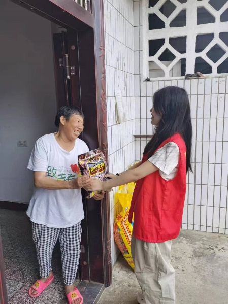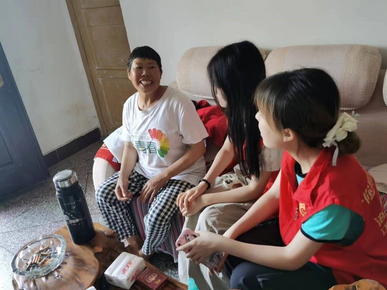 7月22日,志愿者们去到村民家里,志愿者们为老人送上了慰问品后,与老人促膝围坐,认真倾听老人讲述在营盘村的生活状况、过去的故事、子女的成长经历,以及提出了对年轻人的建议,在交谈中更有志愿者帮忙照顾家里的小孩,甚至是家中的宠物,大家用朴实而真诚的行动表达着对老人的关爱,平日里清静的村庄一下子热闹起来,院里一片欢声笑语,暖意融融。志愿者们亲切的笑容,热情的话语,用实际行动让老人们感受到了志愿者们对他们的关怀,离开时大家也不忘叮嘱老人要注意身体,多去周边旅游,享受晚年生活。