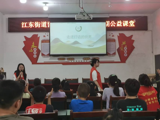 小朋友和日语志愿者一起开展了猜歌名小游戏,欣赏了日语的歌曲,如《打上花火》。孩子们还学习了日语的日常用语,跟读并学习了日语五十音。志愿者们还向大家展现并解释了中日文化的差异之处,虽然分享会的时间较短暂,但相信通过大家与小朋友之间的交流和接触,已经将学习外语的小种子播种在了每一个小朋友的心中。