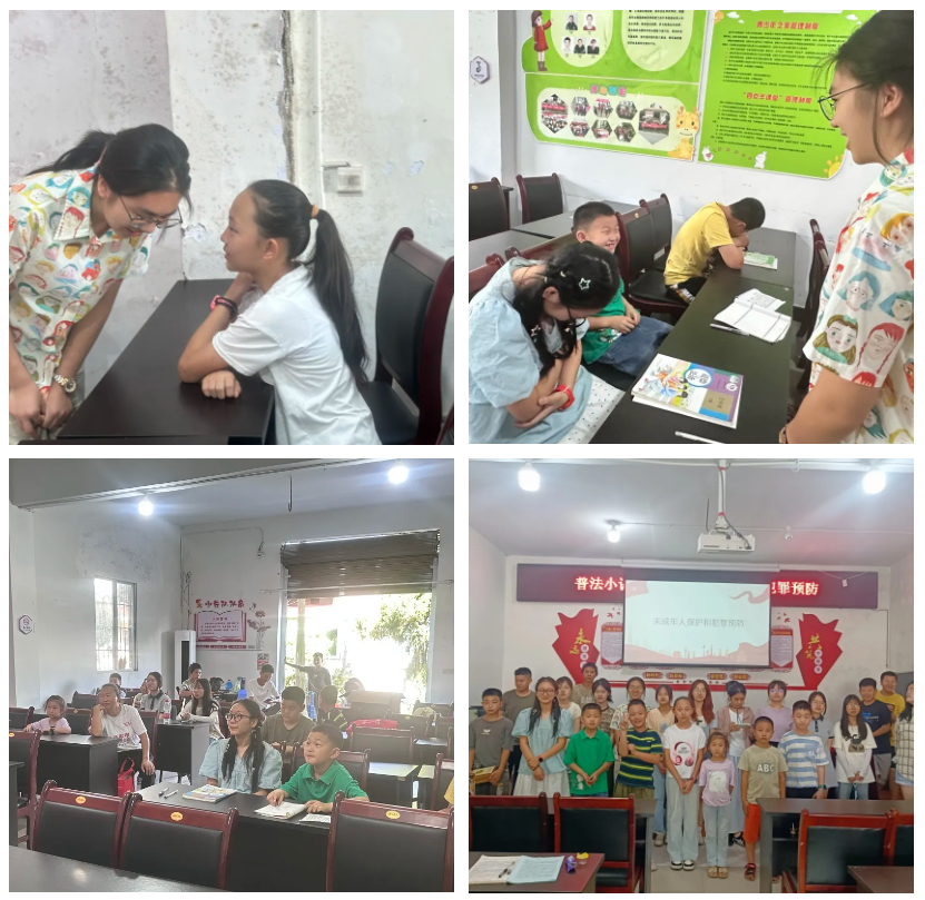 7月23日,志愿者们为营盘村的小朋友们开展了“未成年人保护和犯罪预防”的宣讲活动,通过视频案例让大家明白犯罪的危害以及如何自我保护,通过此次课堂,志愿者为小朋友们科普了法律知识,希望大家可以“知法、学法、懂法、守法”,提高法律素养并主动运用法律武器保护自己。