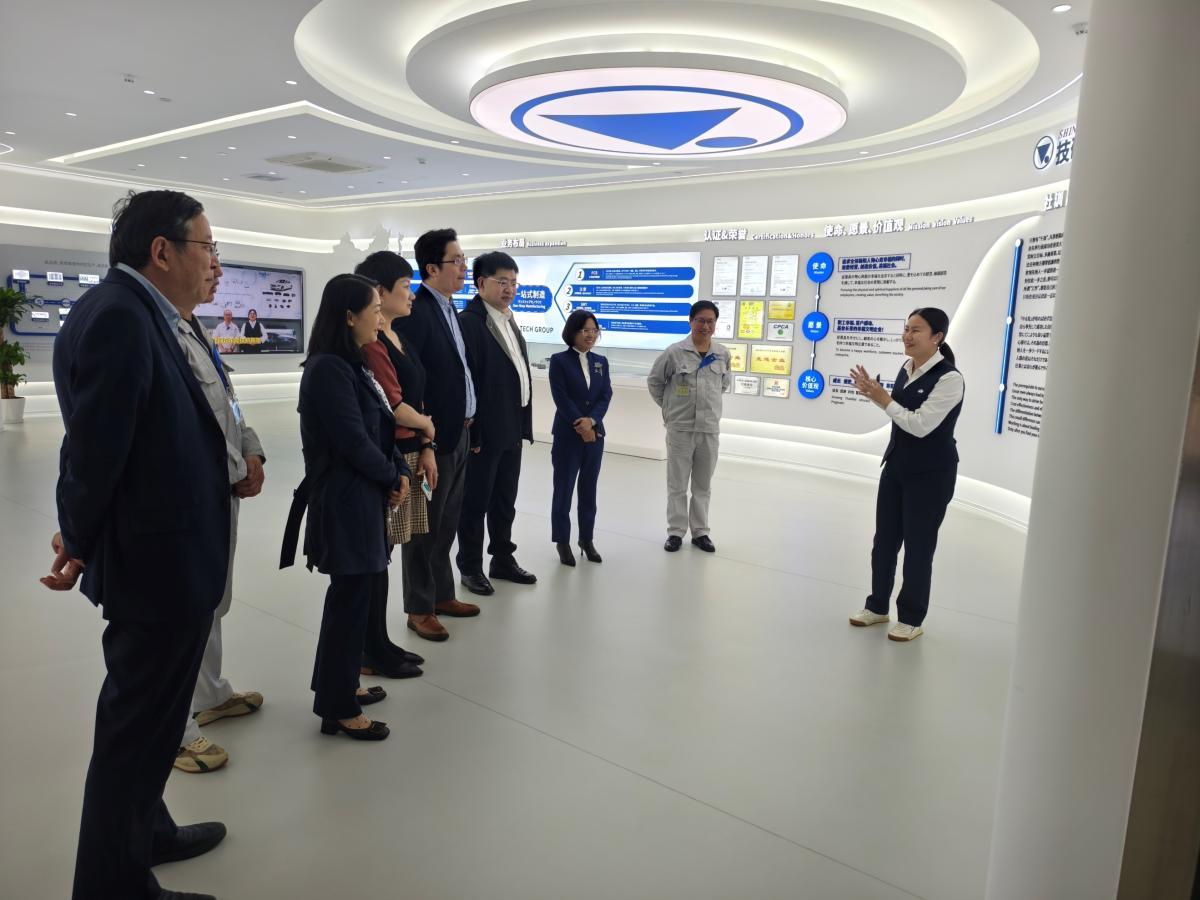 参访东莞技研新阳电子有限公司,与集团总裁郭文英(右五)、副总裁周战(右三)等校友合影