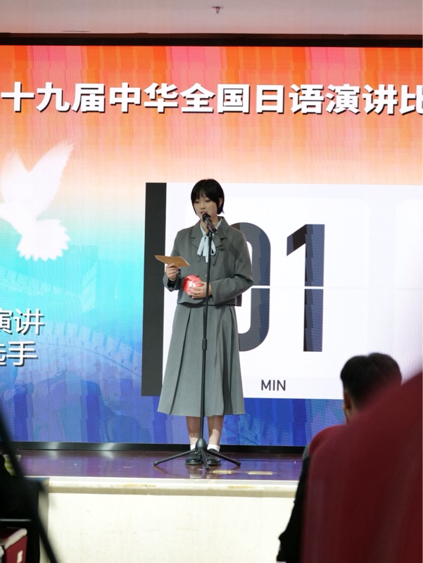 在命题演讲环节,陈玺妃以「私が伝えたい中国の若者文化——今と未来」为题,深入剖析了“中式梦核”文化。她结合自身与父亲的温暖回忆,指出该文化不仅是怀旧,更为现代人提供了心灵慰藉,并强调回顾过去是为了更好地审视自我、汲取走向未来的力量。