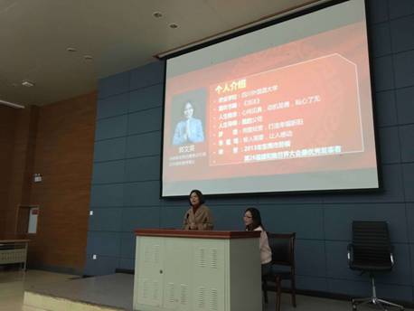 11月19日14:30,师生们落座西区C栋三楼报告厅后,日语系党总支书记吴兴华老师介绍今天借东莞技研新阳集团郭文英总经理一行专程来校招的难得机会,特地邀请技研新阳集团董事总经理郭文英女士为日语系师生分享她人生成功的经历和喜悦。