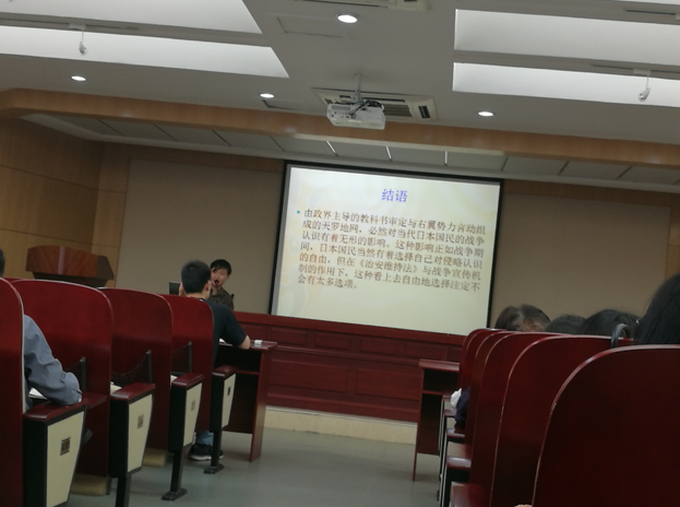 讲座伊始,李老师就提出了“谁是日本人”这一问题,以此为契机,指出作为研究对象来表述时,“日本人”以及“战争认识”均是一种观念而不是一个可以感知的存在。在对主题进行梳理之后,李老师首先介绍了“明治时期日本国民战争论的养成”,引用了大井宪太郎等人的看法,以及新闻报纸的报道等,分析指出当时存在于日本社会中的“先进文明应当领导落后文明”思想。其后,李老师对“全面侵华时代战争的多面性”进行了介绍,通过列举普通士兵、随军僧侣、作家等不同身份者的看法,表明当时那个时代下的日本人对战争认识的欠缺与不足以及错误。随后,通过对“日本国民战争观在战后话语下的重构”的分析,指出日本对战争的认识更多是短时间内在外压下建构而成,并未经过深刻内省,所以不仅时常受到外界影响且常出现反复。最后,李老师提到“对战争责任的物化与当下日本的历史修正主义”,指出物化了的赔偿问题使得“历史认识”与“战后责任”被混淆合一。最后在结语部分,李老师指出谈论日本人身为加害者的自我形象的话语被从战败后的日语中予以剔除,日本社会已经认为战争不再重要,不再思考战争这一问题。但同时表示,就像漫长的历史所证明的,斩断历史与当下的联系只能是徒劳。