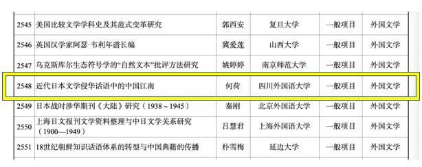 近日,全国哲学社会科学工作办公室公示了2023年国家社科基金年度项目立项名单。我院何荷老师主持申报的《近代日本文学侵华话语中的中国江南》获批国家社科基金一般项目。