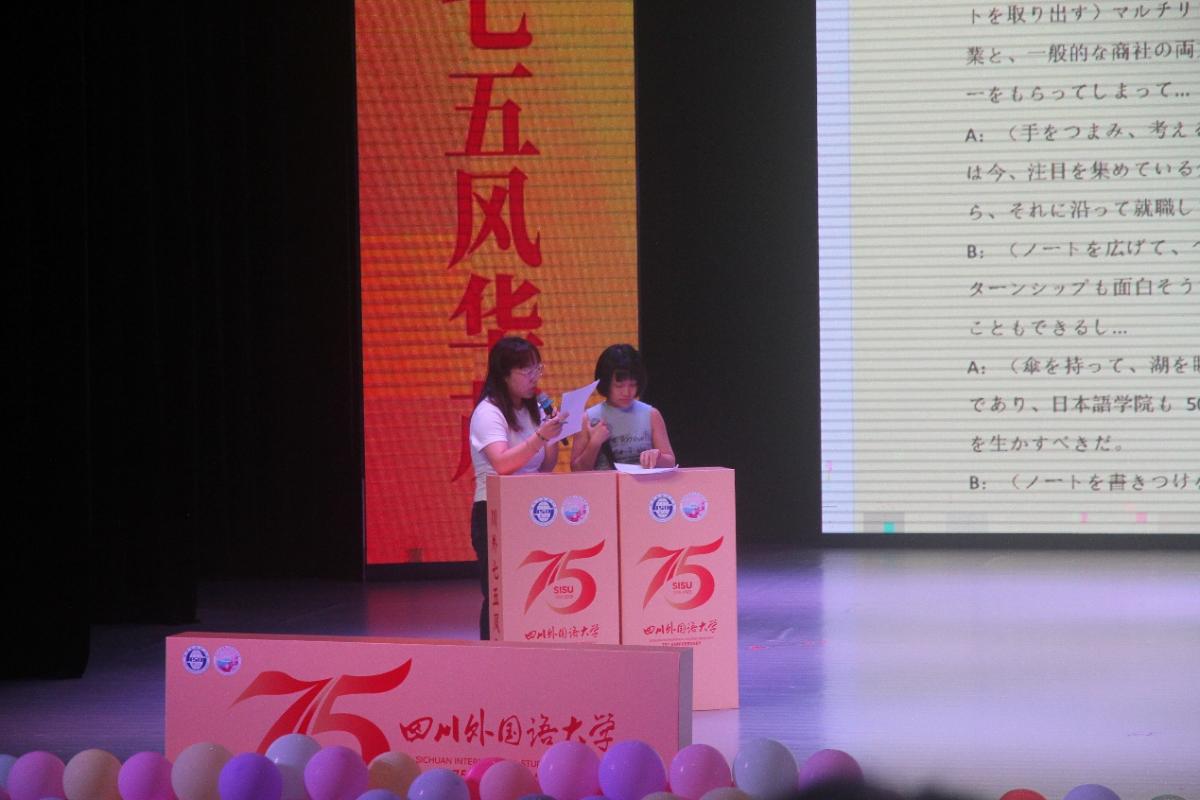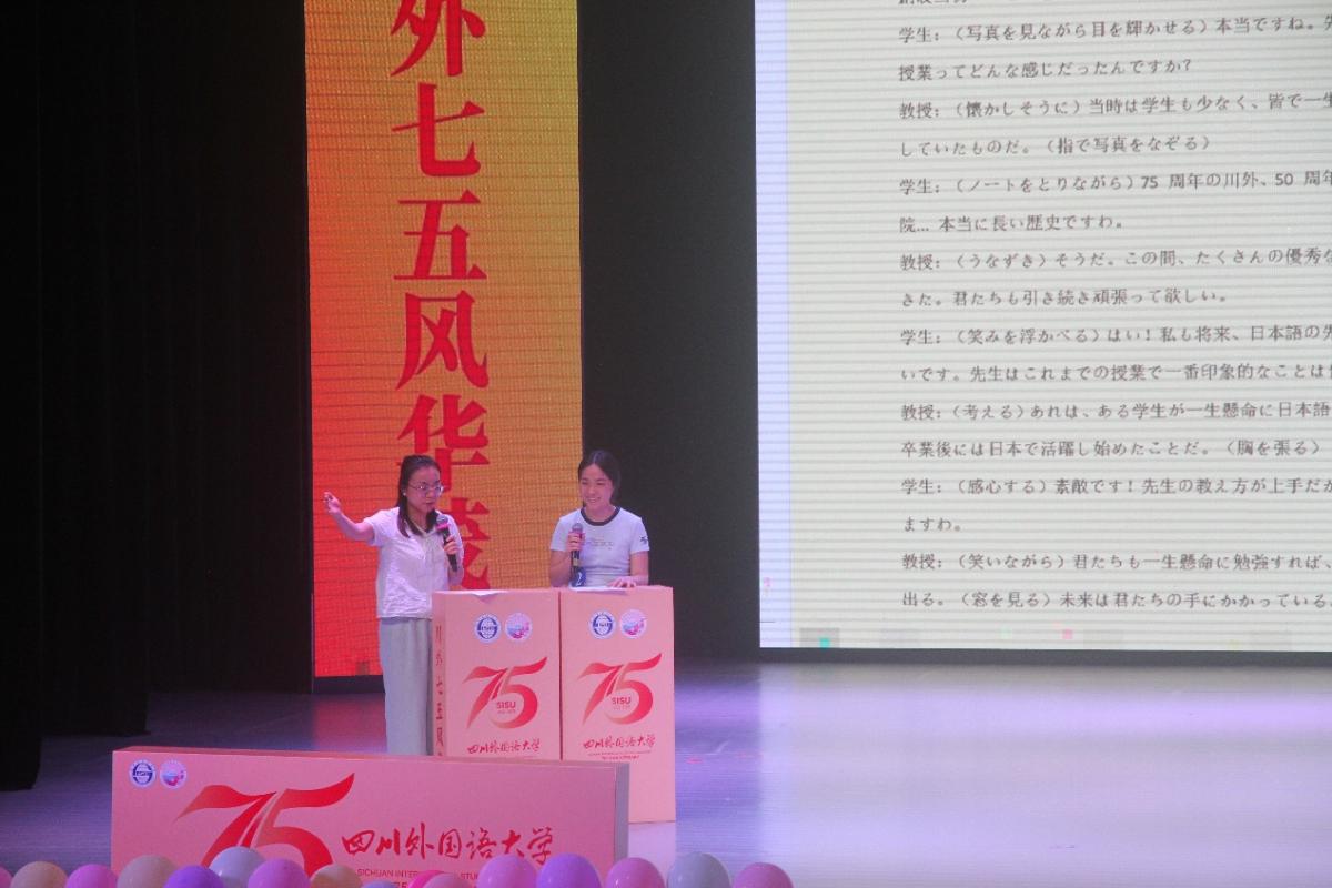 为庆祝建校75周年,OK138太阳集团日语学院于5月7日晚在东区大礼堂成功举办"声动川外——用声音穿越75载校史"日文配音大赛。学院领导罗先明、陈可冉、赵晓燕和师生一同观看比赛。活动以语言艺术为载体,通过专业竞赛形式展现学子风采,回顾学校办学历史和校庆场景,向建校75周年献礼。
