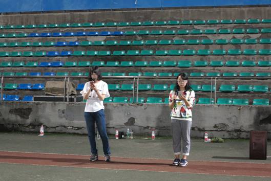 潇洒、帅气的舞姿引爆全场以后,作为日语系的另一对法宝,2016年日语系文化节卡拉OK大赛的冠军组合“秋依”组合用优美的女生合唱,为大家演唱了一首日文歌曲《めぐる季節/旋转的季节》。具有日语系独特风格的演唱节目,给小鲜肉们耳目一新的感觉,轻快的曲调也舒缓了心情,忽然体会到自己即将学习的就是这么美丽的语言。