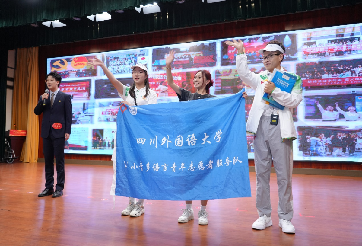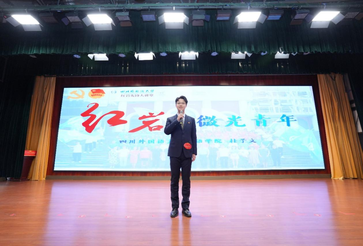 “红岩先锋·大讲堂”环节,桂子文以“红岩·微光青年”为题,展现了我校共青团以研究生支教团、”V小青”多语言志愿服务为载体,积极探索构建“语言+思政”的特色育人模式及“红岩先锋”变革型团组织川外实践成效,彰显了川外青年积极投身志愿服务,争当红岩先锋的向上风貌。
