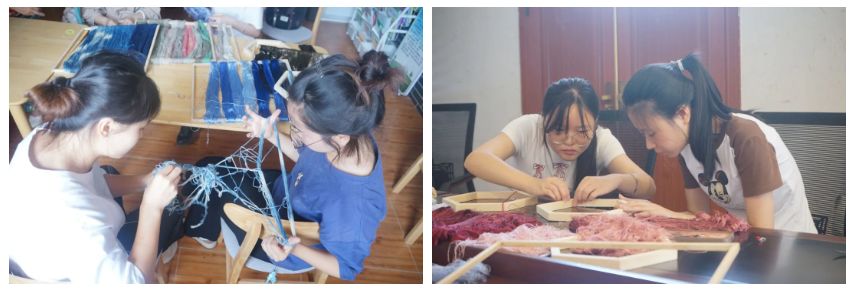 刘老师向我们介绍,这些线染色的原料萃取自花草之中,斑斓的色彩中让我们感受到“隐于南山”的宁静,不由得更加向往这项神秘的非遗技术。