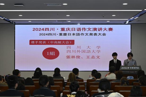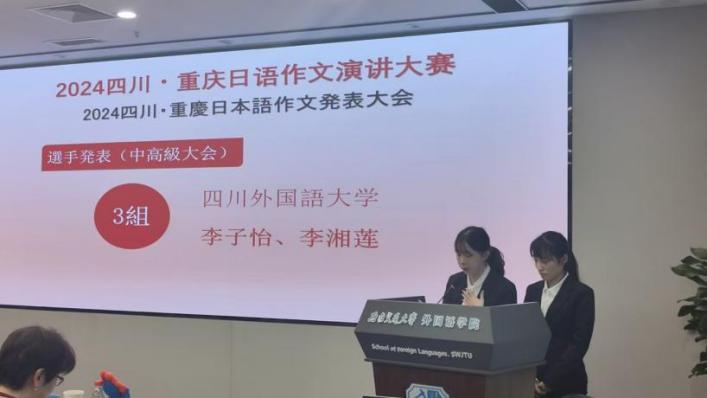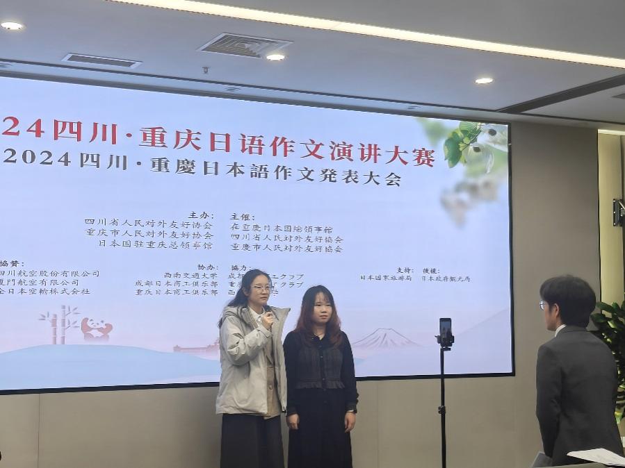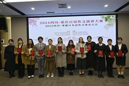 2024年11月24日,由四川省人民对外友好协会、重庆市人民对外友好协会、日本国驻重庆总领事馆共同主办的“2024四川·重庆日语作文演讲大赛”在西南交通大学成功举办。我校日语学院学子再次展示扎实的专业基本功和语言应用能力,包揽大赛中高级组前三名。