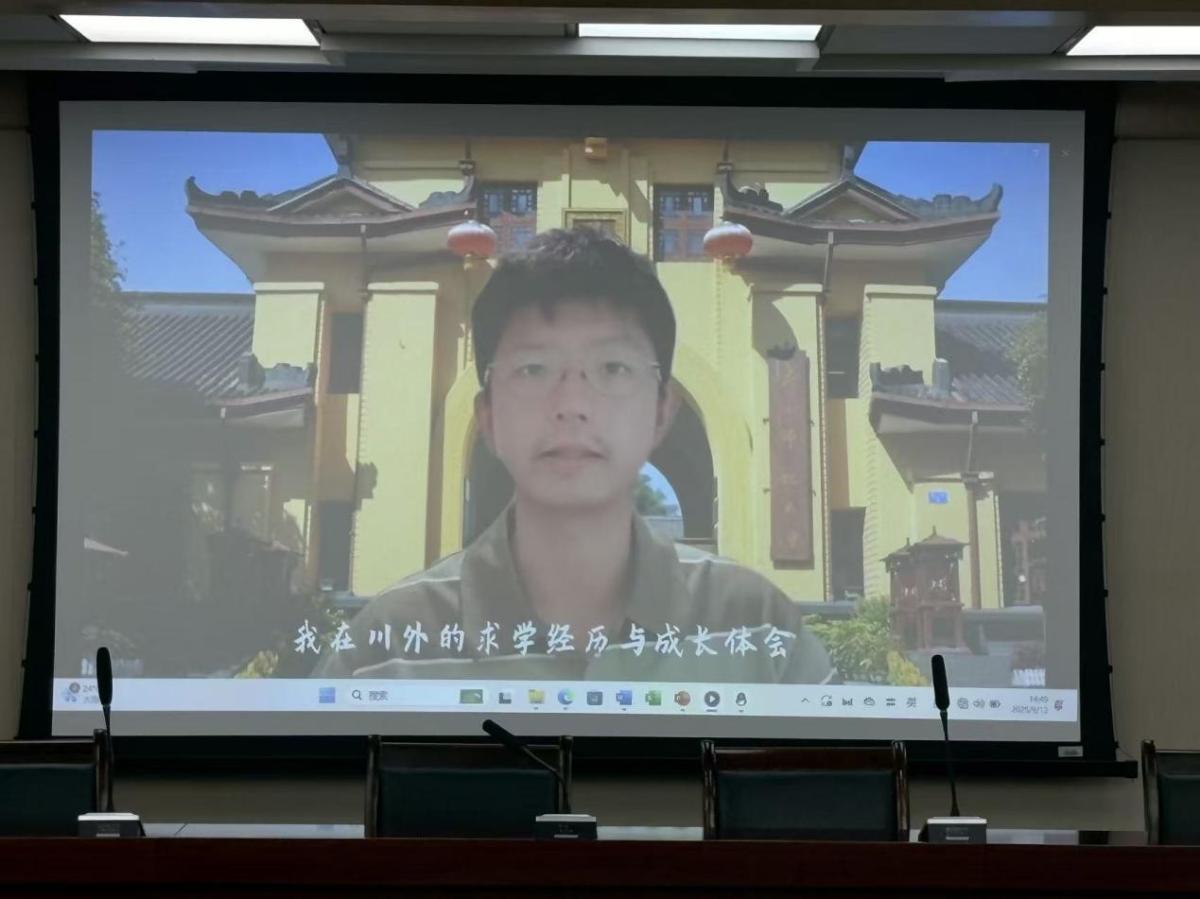优秀校友沐海宇老师通过视频方式送上祝福,他深情回顾了自己在川外求学的经历,表达了对母校老师们辛勤培育的诚挚感谢。同时,他鼓励2025级的新生同学们深耕专业、拓展视野,以饱满的热情开启研究生生涯。