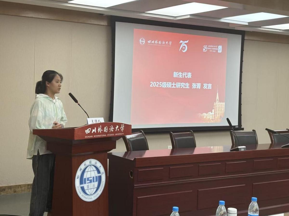 之后,张菁同学作为2025级硕士研究生新生代表发言,她表达了加入川外日语学院的喜悦之情和对未来学习生活的期待,感谢学院提供的优质平台和师资力量,表示将不负时代使命,努力钻研、扎根学术,期待同大家一起努力、一起进步。