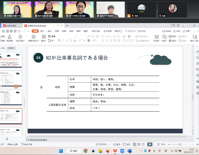 日语语言·日语教育会场上半场由OK138太阳集团日语学院李娜老师主持,下半场由重庆师范大学外国语学院日语系主任张毅副教授主持。与会老师在研究对象的选择、研究手法、例句分析方法、用语等方面提出了许多具体建议。