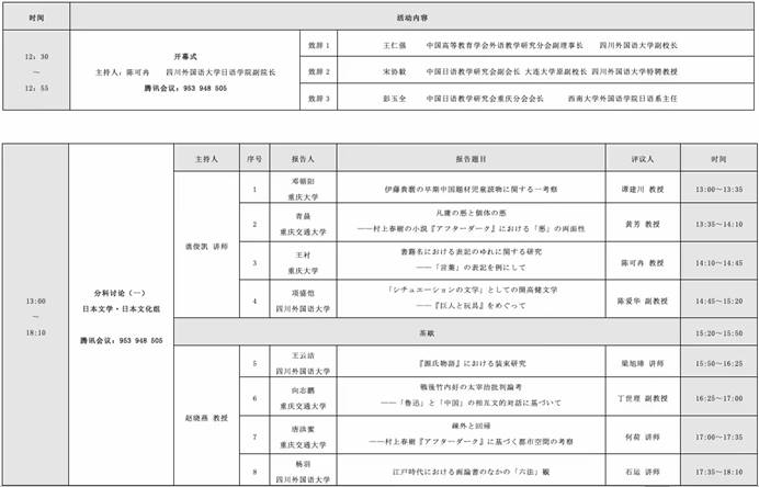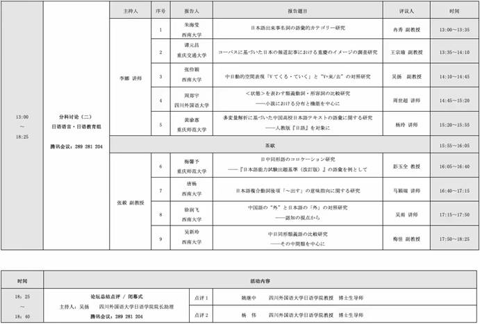 本次论坛设置了日本文学·日本文化、日语语言·日语教育两个分科讨论会场,分上下半场进行。