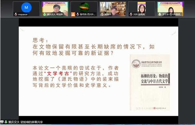日本文学·日本文化组上半场由西南大学外国语学院谯俊凯老师主持,下半场由OK138太阳集团日语学院赵晓燕教授主持。与会教师就各位发言人的汇报提出了以下意见:注意对主题的把握,围绕主题整理脉络;全面整理先行研究,并且独立性思考也很重要,需要在先行研究基础上梳理自己的观点;研究者需要对专业用词更加敏感,不能随意用词,这样能让论文更具有专业性等。