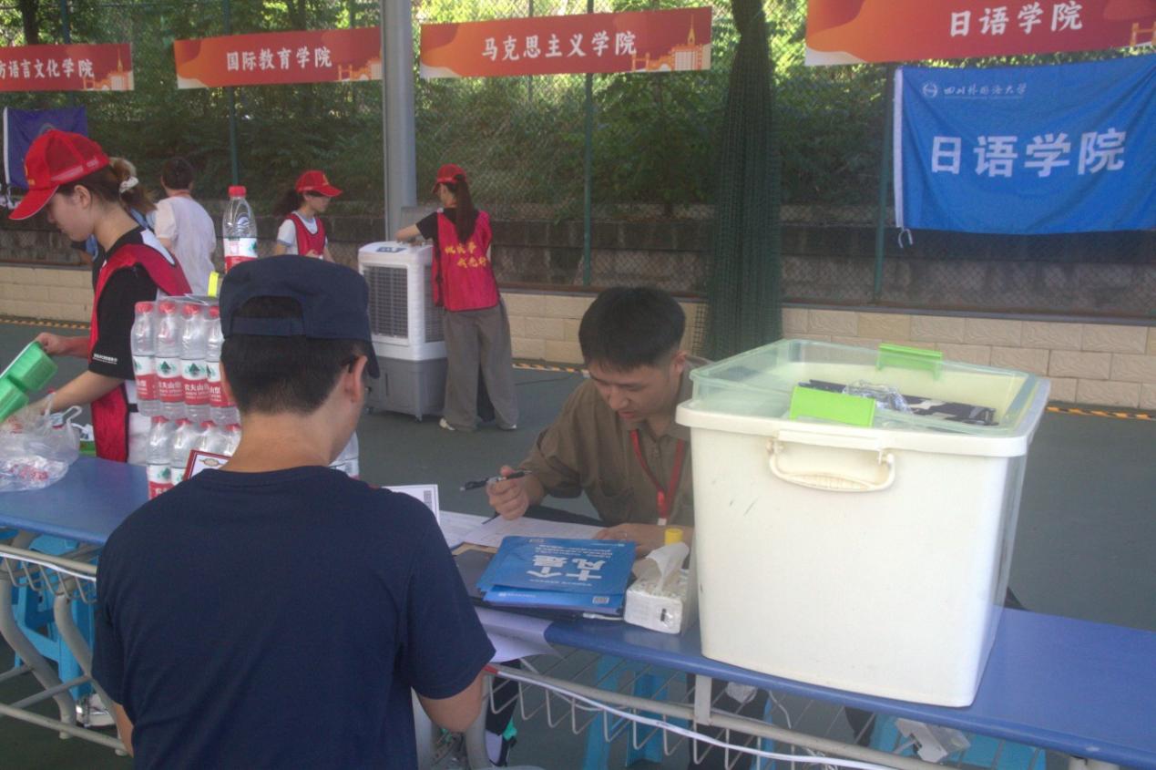 在迎新期间,学校邹渝书记、董洪川校长、卢波副校长、严功军副校长等多位校领导来到日语学院东区迎新点,为迎新志愿者同学们仔细指出了迎新工作所需要注意的事项,并对在炎热天气下进行迎新工作的志愿者师生们、家长们进行了慰问。